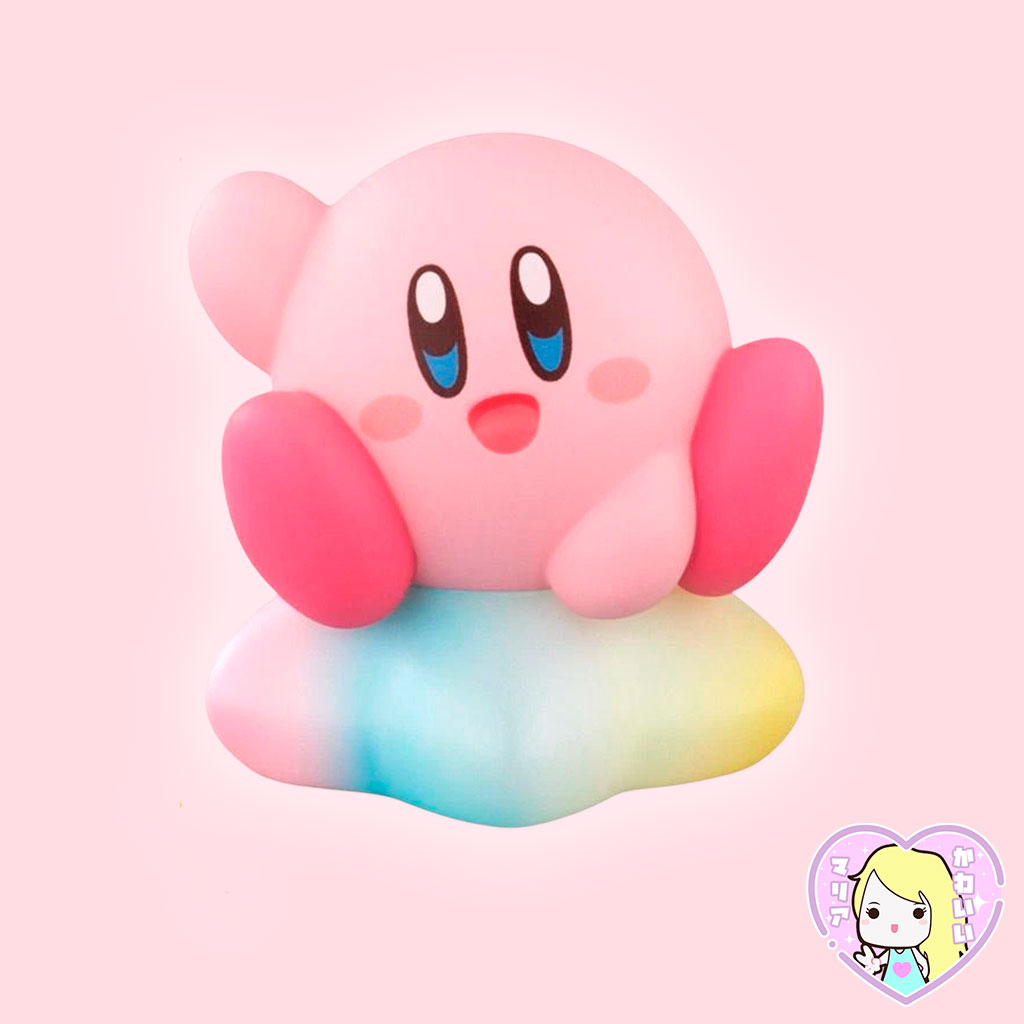 Disfruta de esta figura de vinilo suave de Kirby en colores pasteles y poses adorables!🎶 Si tienes suerte, ¡podrías conseguir también la versión secreta de Kirby Warp Star con una nube arcoíris 🌈💫